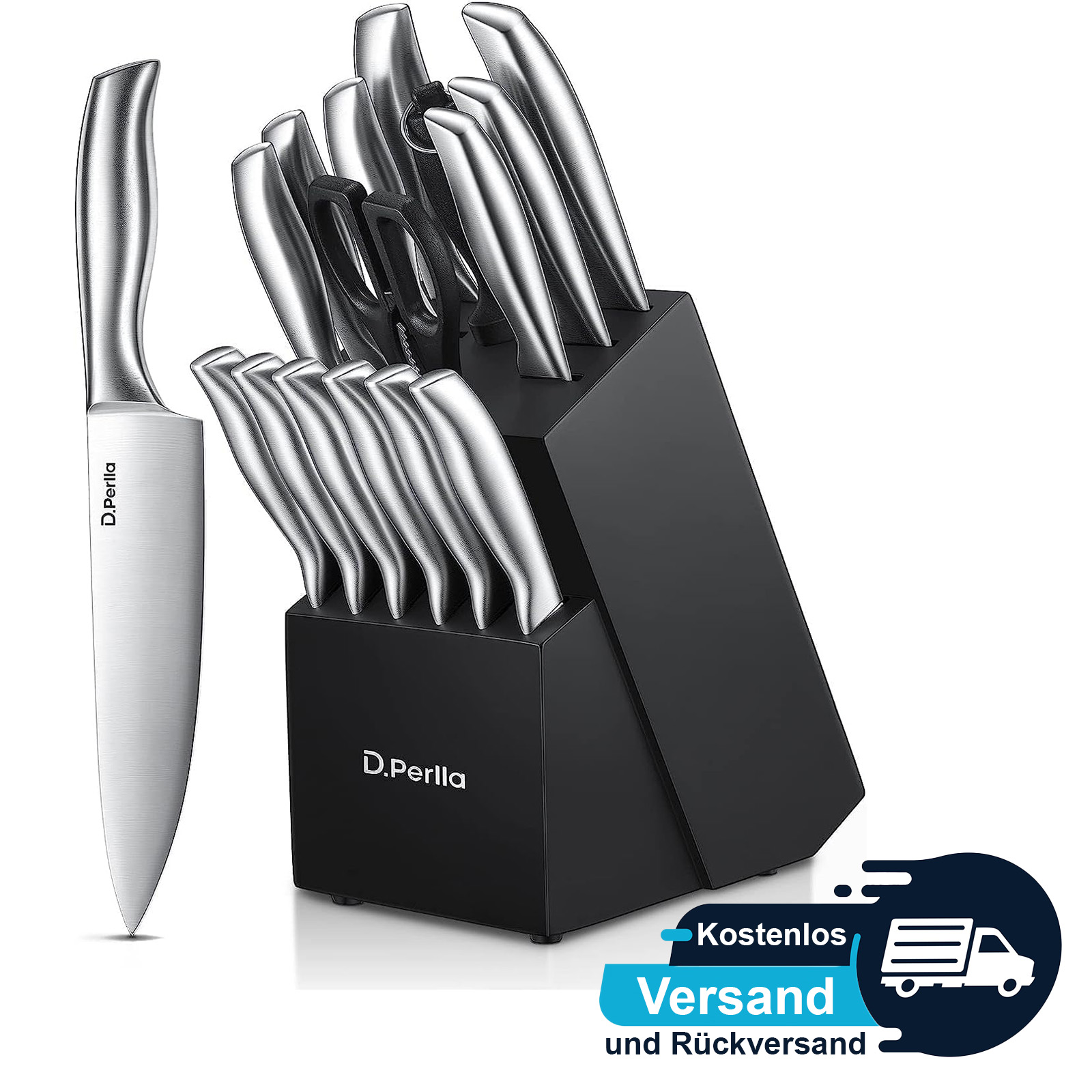 🍴 Vielseitiges Messerblock-Set: Ideal für Hobbyköche und Anfänger, inklusive Holzmesserblock, Chefkochmesser, Fleischmesser, Brotmesser mit Doppelwellenschliff, Santokumesser, Allzweckmesser, 6 Steakmesser, Gemüsemesser, Schälmesser, Wetzstahl und Küchenschere.